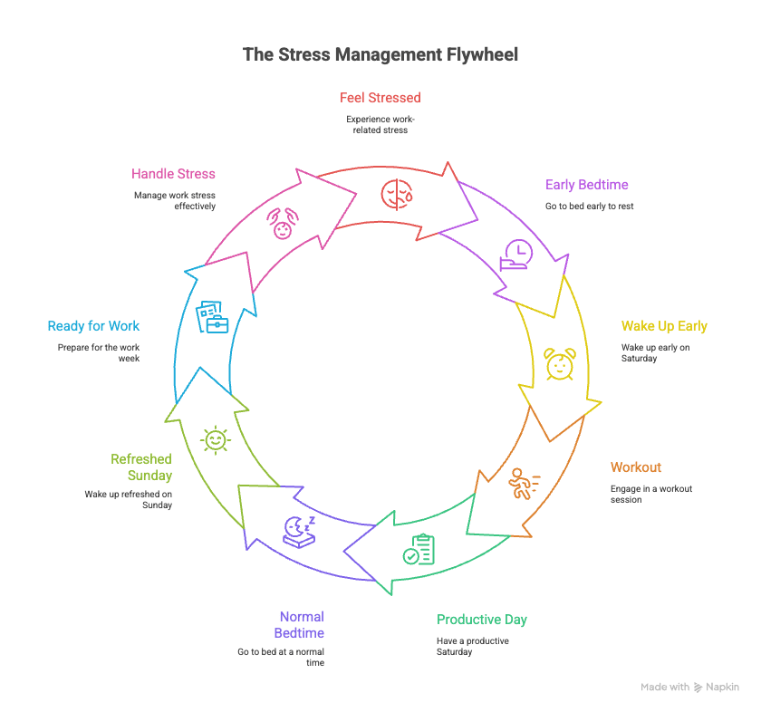 Wake up Monday groggy and undermotivated → perform stressed at work all week.